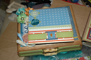 Just wanted to share what I received in the Free Spirit Cigar Box Swap. My partner was Lorretta Harwell. She was very generous with me. I received the cigar box filled with 3 Websters Pages pin flowers and a stamp. She also gave me a coordinating scrapbook set that matches the cigar box, I also received a 6x6 scrapbook layout and a wonderful mini album. Can't wait to use the things I received in upcoming projects.